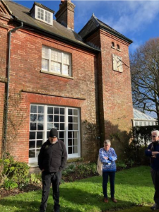 We then saw the once sinister building that’s now the red-brick Rectory, in the 1930s an orphanage in which servant girls were notoriously exploited by the Rector’s wife, arousing concern in the village and a petition organised by the writer Llewellyn Powys and signed by Sylvia Townsend Warner and Valentine Ackland. This led to a national scandal and a summons for libel in 1935, whose costs of £1000 were awarded against the three (£1000 in 1935, equivalent to £89,120 in 2024, was a vast sum especially for freelance writers – but the scandal got the orphanage closed: a victory of sorts, however expensive). Lastly we stood outside TF Powys’ house, Beth Car, designed and built by Hardy’s brother – now with a conservatory extension, but still the same red brick villa.