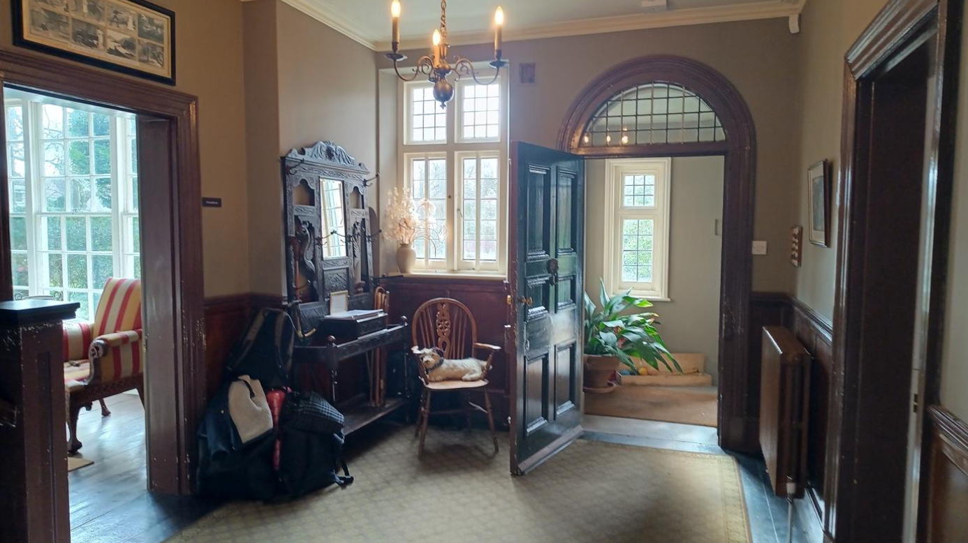 Max Gate entrance hall (note the model of Hardy’s terrier Wessex in the easy chair)