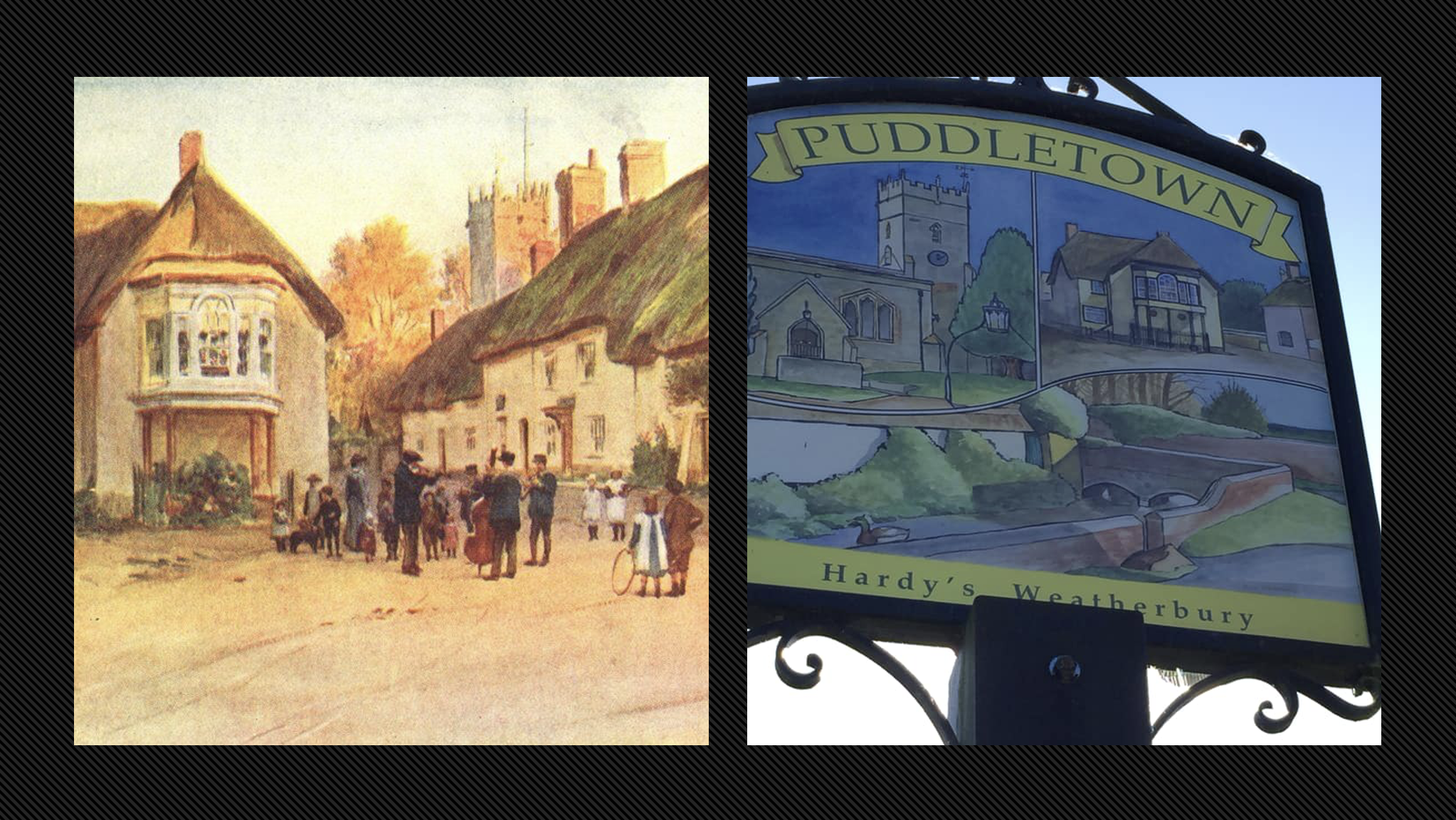 Puddletown was both the closest village with a market to Thomas Hardy’s Higher Bockhampton home, and the place where so many of his uncles, aunts and cousins, both Hands and Hardys, lived. It was here that his grandfather, Thomas Hardy, married Mary Head and set out to start a new life at Higher Bockhampton in 1800. When in his poem The Roman Road Hardy recalls walking that ancient thoroughfare with his mother, his destination was Puddletown, and especially his Sparks and Antell cousins. As a young man recently returned from London it was his cousin Tryphena who lived and taught there who would have proved a particular attraction for him.
