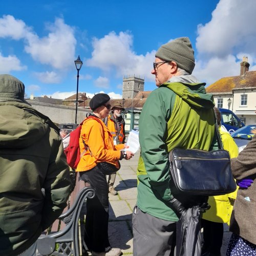 A group of Hardy enthusiasts enjoyed a walk around Wareham to explore the literary connections to Hardy’s Anglebury and the ancient history of the town. Wareham, which sits at the entrance to the Isle of Purbeck on the meandering rivers Frome and Piddle is a picturesque Dorset town steeped in heritage.